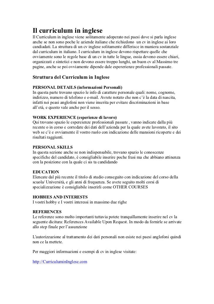 L'autorizzazione al trattamento dei dati personali | CV in Inglese L'autorizzazione al trattamento dei dati personali si rifà alla legge italiana, ovvero al Decreto Ligislativo numero 196 del 30 giugno 2003, e rappresenta il consenso per iscritto da parte del candidato all'uso e alla divulgazione dei dati del candidato strettamente in ambito di ricerca di lavoro. In un curriculum in inglese questa autorizzazione serve solamente nel caso di una candidatura su territorio italiano, oppure nel caso di una candidatura all'estero tramite o presso un ...